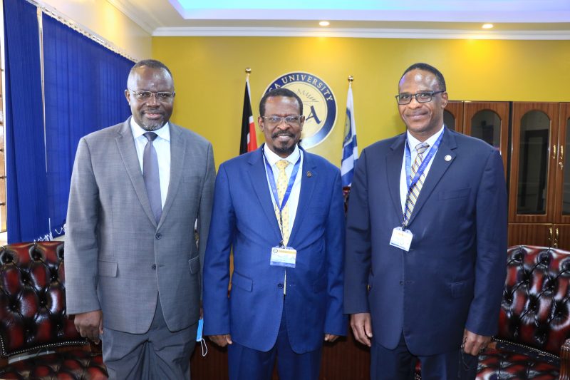 Prof. Venansius Baryamureeba, former Makerere Vice Chancellor today paid a courtesy visit to our Vice Chancellor Prof. Isaiah I.C. Wakindiki at the main campus Ruaraka.