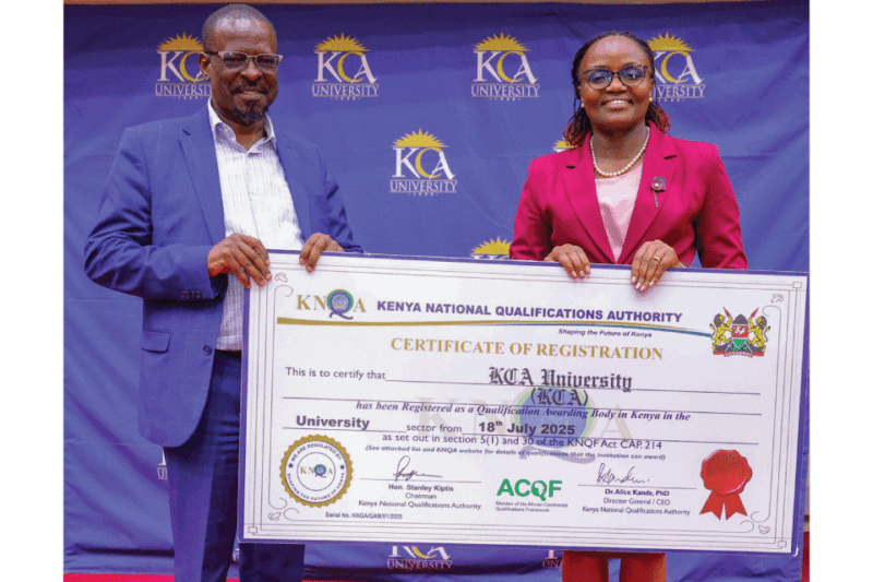 KCA University has reached a significant institutional milestone following its official registration as a Qualification Awarding Body (QAB) under the Kenya National Qualifications Framework Act. This recognition, granted through the Kenya National Qualifications Authority, affirms the University’s adherence to nationally benchmarked standards in curriculum development, assessment and certification.