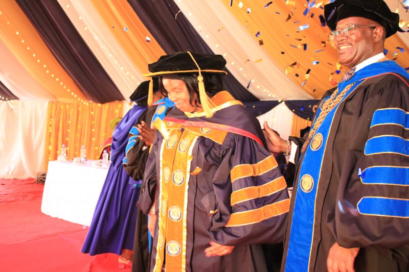 Professor Mugenda was presented with instruments of office which included the University Flag, Charter and Logo in the investiture attended by the University Board Trustees, University Council, Representative of Chancellors from Public Universities, KCA University Vice Chancellor, Vice Chancellors from other Universities, and Partners among others.